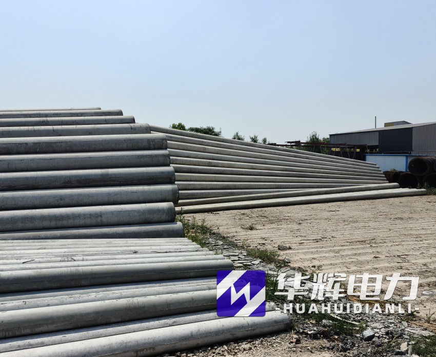 8米河源水泥电线杆通常采用钢筋混凝土离心成型工艺,杆体呈锥形结构,梢径150mm-190mm,根径230mm-270mm,壁厚40mm-50mm。根据标准GB/T4623-2014,产品混凝土强度等级不低于C40,主筋采用HRB400级钢筋,配筋量根据抗裂弯矩要求设计,标准抗裂弯矩可达12-18kN·m,破坏弯矩不小于24kN·m。杆体重量约0.5-0.8吨,运输安装便捷,适合人工或小型机械施工。